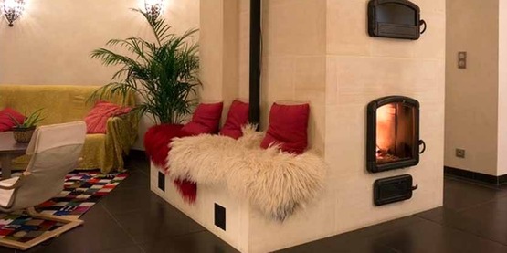 Masonry heaters have two features that set them apart from other types of combustion equipment. The first is apparent on the outside: they are covered by a large amount of stone or bricks. The second is concealed on the inside: they are designed with a system of tunnels through which the combustion air travels before going up the chimney or stovepipe. Together, these design features make for very efficient, clean burning heaters. Masonry heaters still have a firebox, where wood is burned. But unlike wood stoves, it takes a very long time for the heater to heat up. The large thermal mass (the bricks or stone cover a frame of firebrick) may take a full day to heat up but it will also hold that heat for a very long time (and is warm-to-hot to the touch, but nowhere near as hot as a wood stove). One or two small, hot fires per day will keep the heater hot with comfortable, even heat that radiates in all directions. Masonry heaters also often have built-in cooking compartments ideal for baking bread or making stews.